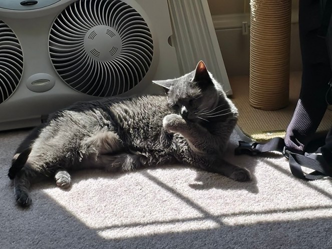 “Tellus was diagnosed with cancer. He’s on chemotherapy and is doing well, but still underweight for our taste. We’re trying to rebuild his GI tract. He’s on daily steroids and probiotics. He was okay while we were out.”